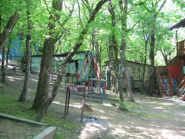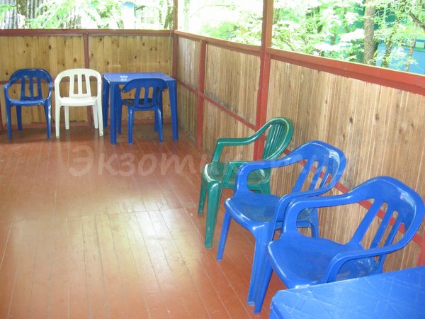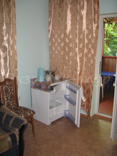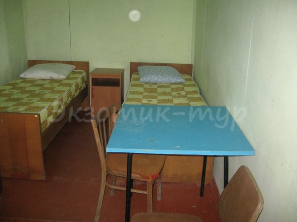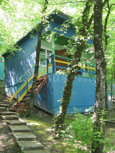 в 2-х,3-х,4-х местных домиках с удобствами на территории, холодильник в номере.