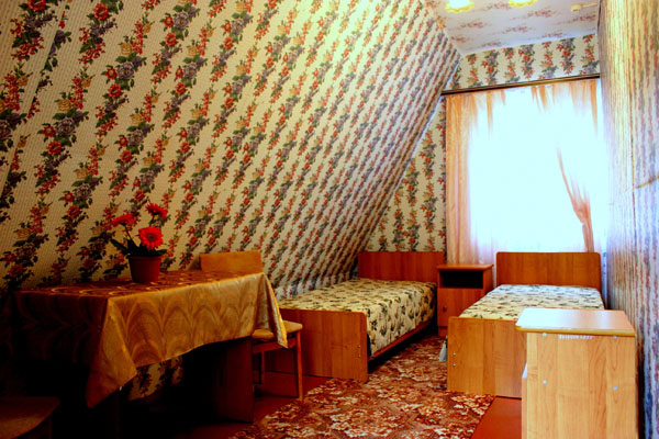 В номере : односпальные кровати, шкаф для одежды, прикроватные тумбочки, обеденный стол, кондиционер или вентилятор, холодиль-ник, посуда. Сан/узлы, душевые - на территории ( благоустроенные , в кафеле, в сан.узле –унитазы)