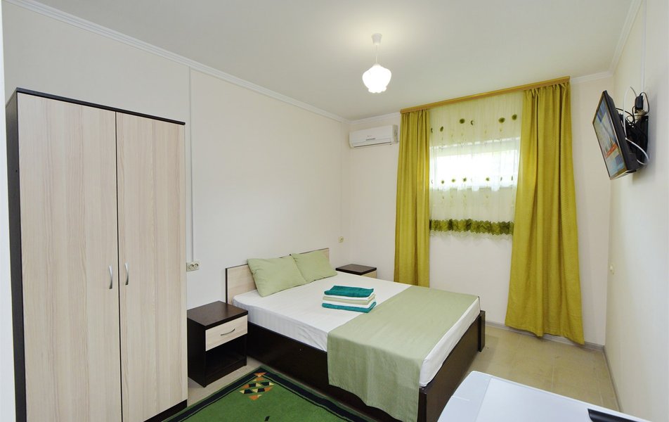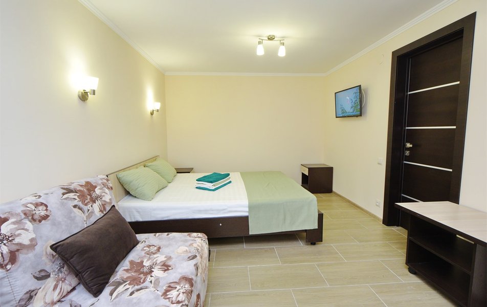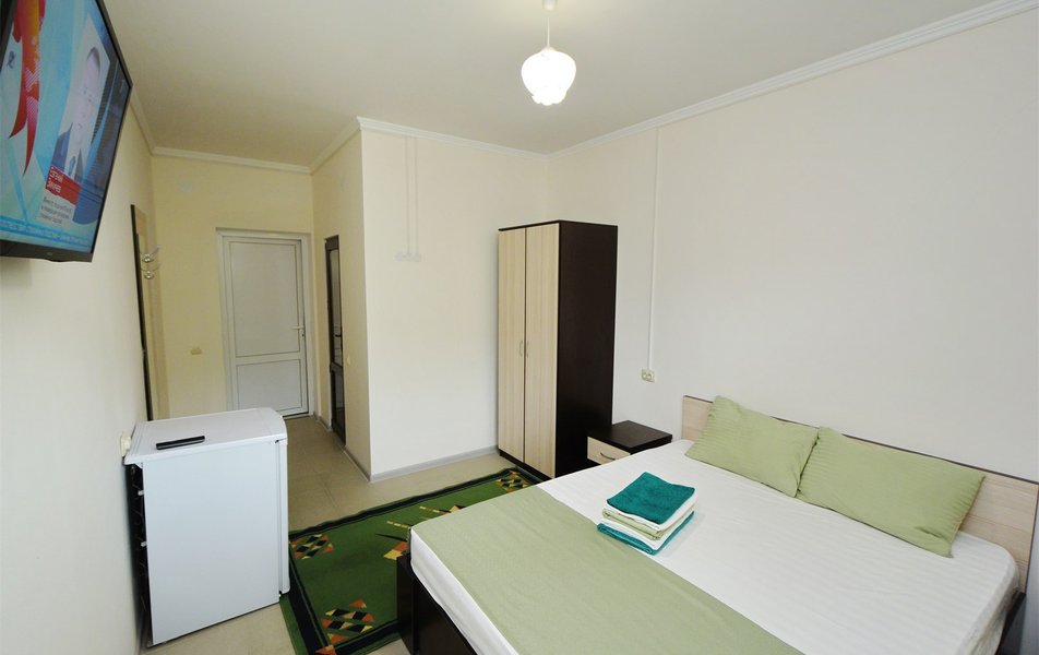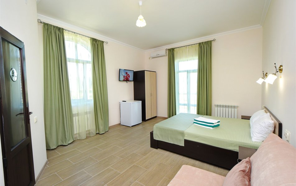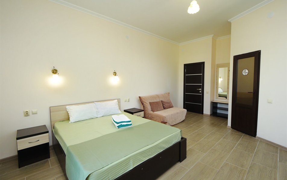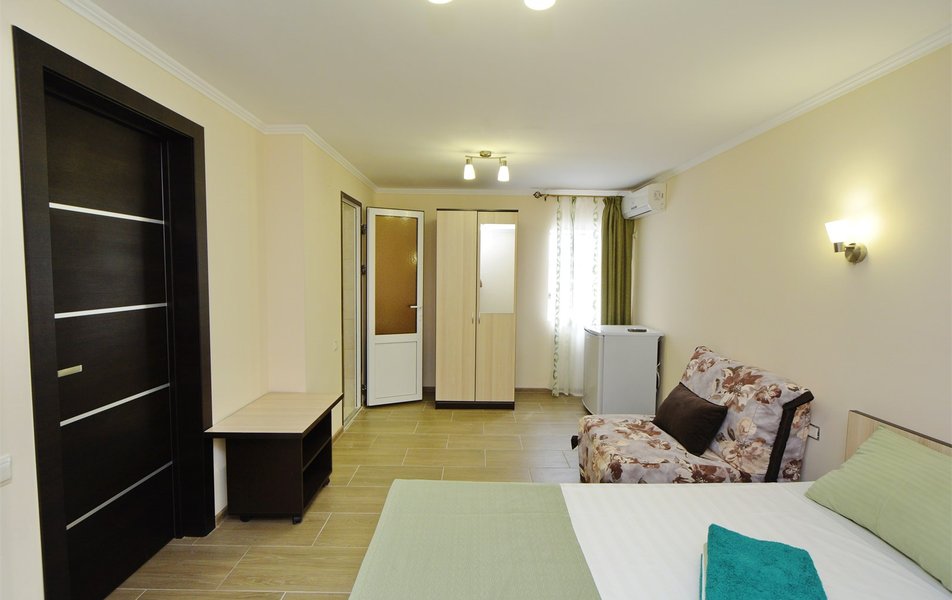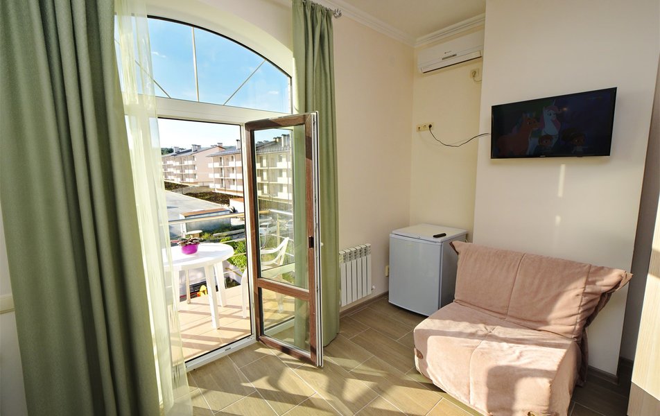 Семейный 4-местный (с балконом и видом на море) Кол-во основных мест 4 Площадь (кв. м) 26 Балкон Мебель: диван раскладной, кровать двуспальная, прикроватные тумбочки, стол, стулья, шкаф, вешалка, зеркало. Оборудование: минихолодильник, сплит-система, телевизор. Санузел с душем, туалетные принадлежности.