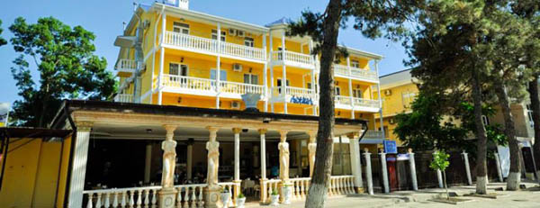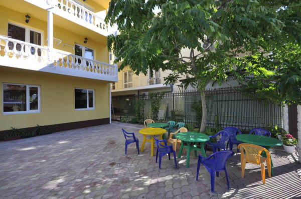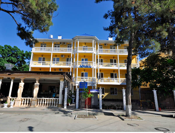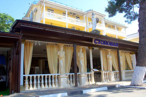 в самом центре курортного поселка Дивноморское на пешеходной аллее, прогуливаясь по которой можно быстро дойти до пляжа, расположенного в 200 м отделяет от гостиницы. Гостиница отличается выделяющейся архитектурой и красивым, ухоженным двориком.