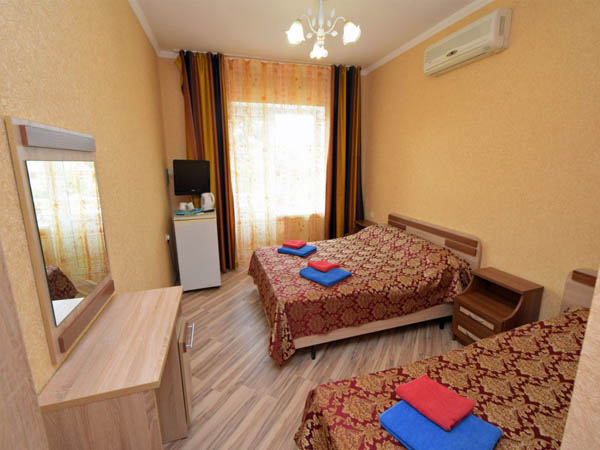 2,3-местный стандартный номер: ТВ, холодильник, санузел, душ, кондиционер, электрочайник, фен. В двухместных номерах предоставляется доп. место – кресло- кровать, в трехместных номерах – не во всех. Стандартные номера не имеют балконов и расположены на первом этаже отеля.