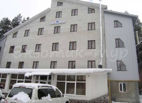 Отель «Эсен» - это пятиэтажное здание оборудованное современным итальянским лифтом. Отель расположен в поселке Терскол, в 50 метрах от подъемников горы Чегет . Примерно в 5 км от гостиницы находится нижняя станция канатных дорог Эльбруса – поляна Азау с пологими склонами, очень удобными для начинающих горнолыжников, и просто желающих покататься .