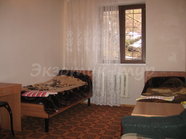 Эконом. Пять номеров - на 5 мест, состоящих из двух блоков 2+3 места. В номерах: две изолированные комнаты, в каждой есть ТВ, а удобства (душ, туалет, умывальник) на два номера. Идеальное решение для большой компании.