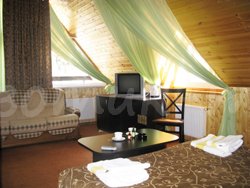 - 2-х местные однокомнатные номера "Люкс"(14 номеров). Дополнение к минимальному набору – отделка натуральным деревом, мягкая мебель.
