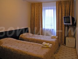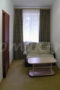 - 2-х местные двухкомнатные номера "Полулюкс" (9 номеров). Дополнение к минимальному набору – мягкая мебель.