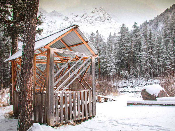 Между отелем и рекой протекающей рядом стоит деревянный сруб настоящей русской бани на дровах. На территории отеля мангал и беседки для любителей приготовить шашлык самостоятельно. Через дорогу нарзанный источник "Ачи-Су"