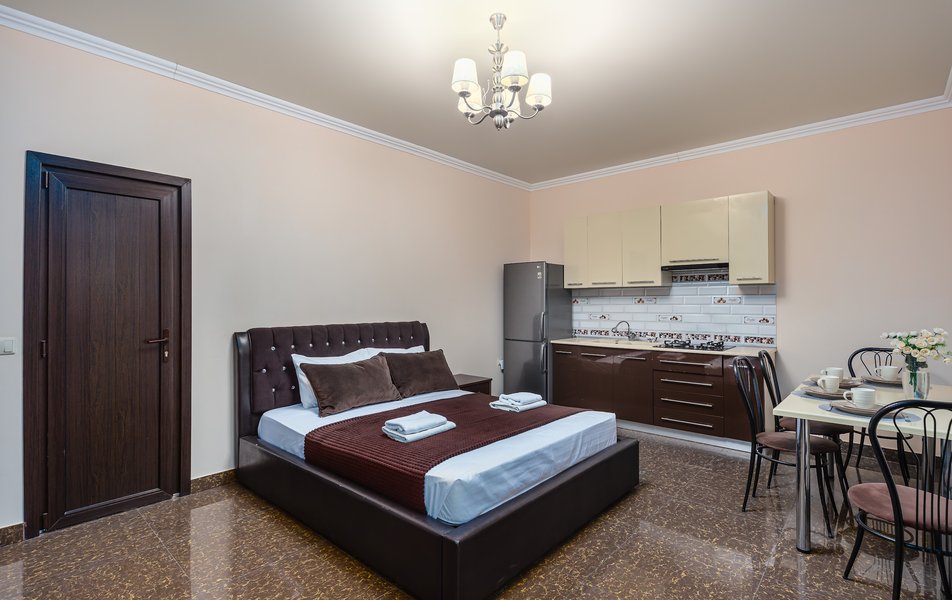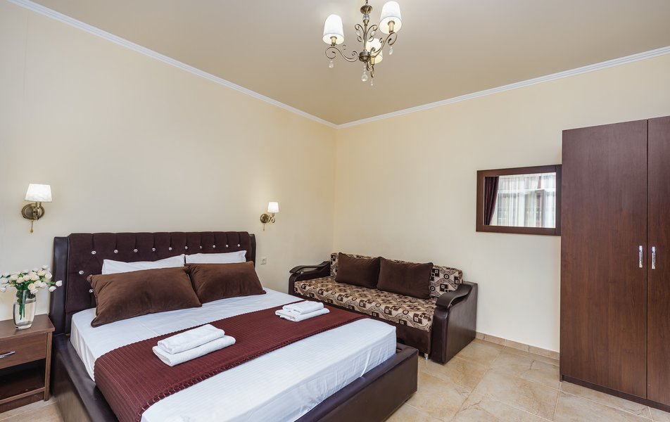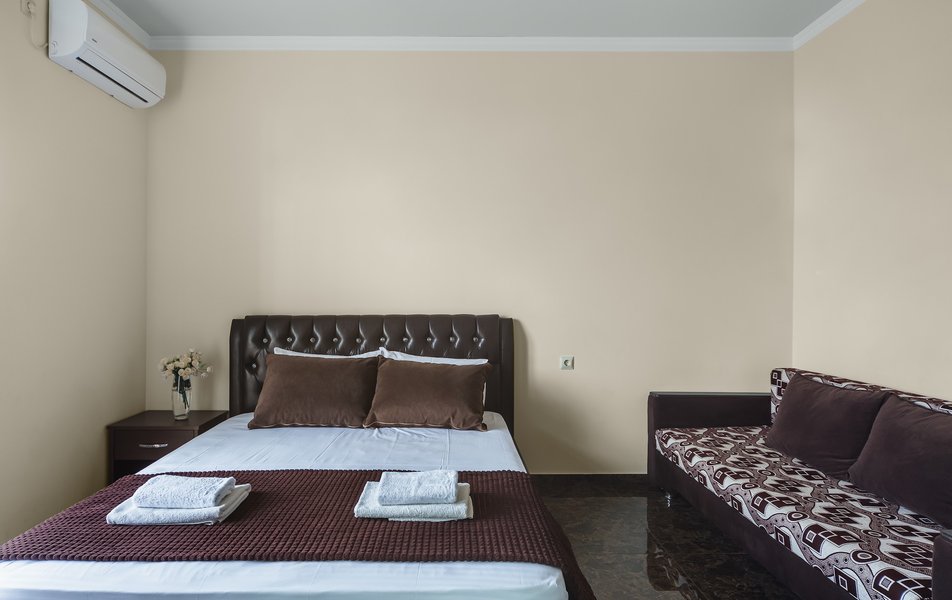 4-местная студия (макс. 4 чел., 28 кв. м, телевизор, кондиционер, душ, фен, холодильник, 2-спальная кровать, диван, санузел, с отдельным входом и собственной кухней).