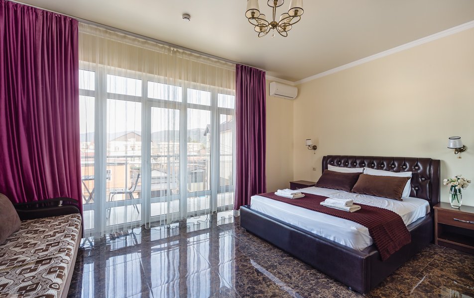 4-местный полулюкс с балк. (макс. 4 чел., 22 кв. м, телевизор, кондиционер, душ, фен, холодильник, балкон, 2-спальная кровать, диван, санузел). Сервис: Уборка номера раз в 3 дня, смена белья - раз в 6 дней, смена полотенец - раз в 3 дня