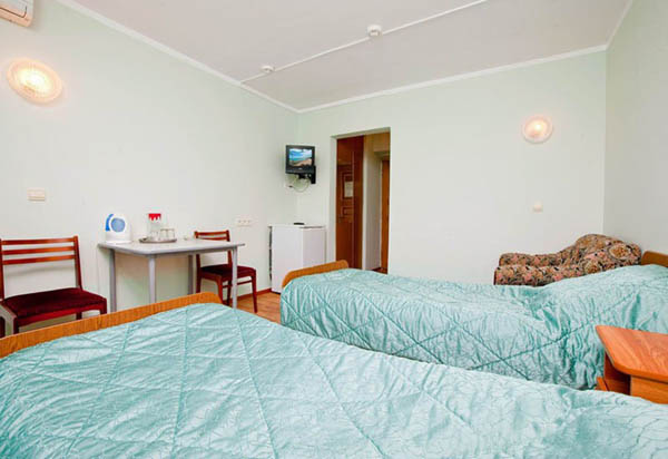 2-местный 1 категории (макс. 2+1 чел., 13,3 кв. м, телевизор, сплит-система, холодильник, лоджия, 1-спальные кровати, душ,туалет). Доп. место - кресло-кровать, может быть установлено без ограничения по возрасту.