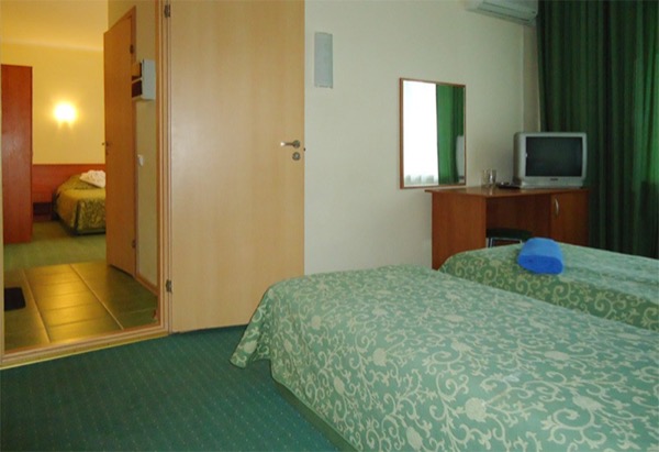 4-местный 2-комнатный семейный номер (макс. 4+2 чел., 40 кв. м, телевизор, сплит-система, душ, холодильник, балкон, туалет). Доп. место - еврораскладушка, может быть установлена без ограничения по возрасту..