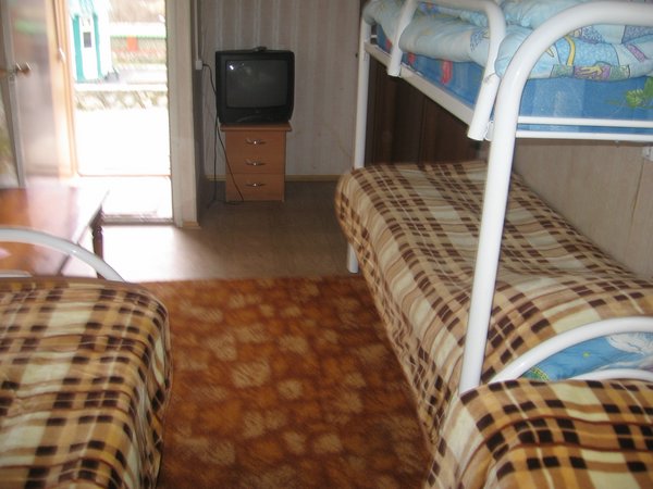 Люксы №1 (2-й этаж) и №2 (3-й этаж) 2-х местный 2-х комнатный, с балконом, удобства, спальный гарнитур, шкаф для посуды, мягкая мебель, журнальный столик, ТВ, видео, НТВ+, с/у, ванная, холодильник (мебель из расчета на 4 чел.,в №2 на 6 чел.)