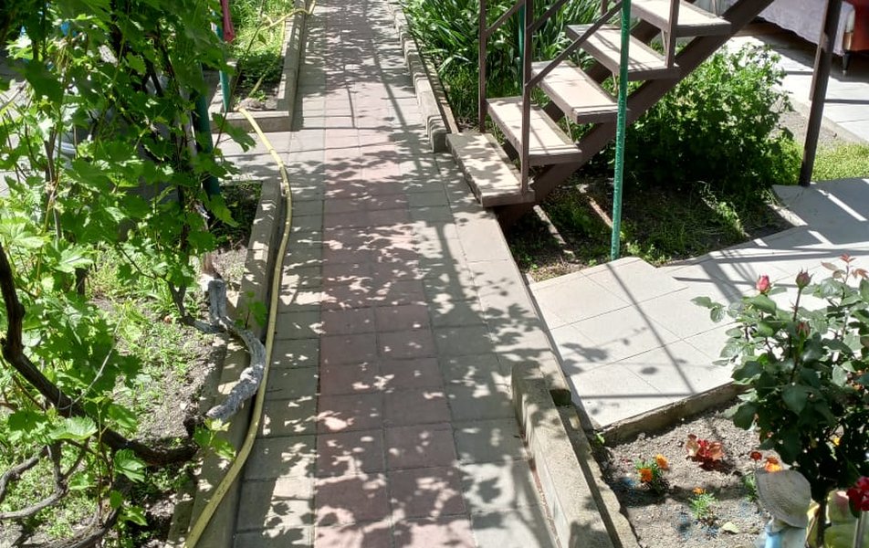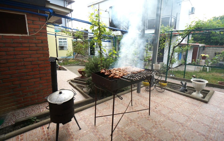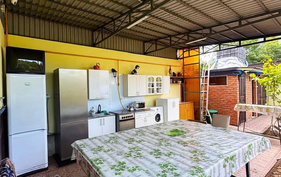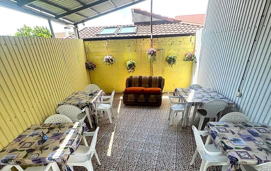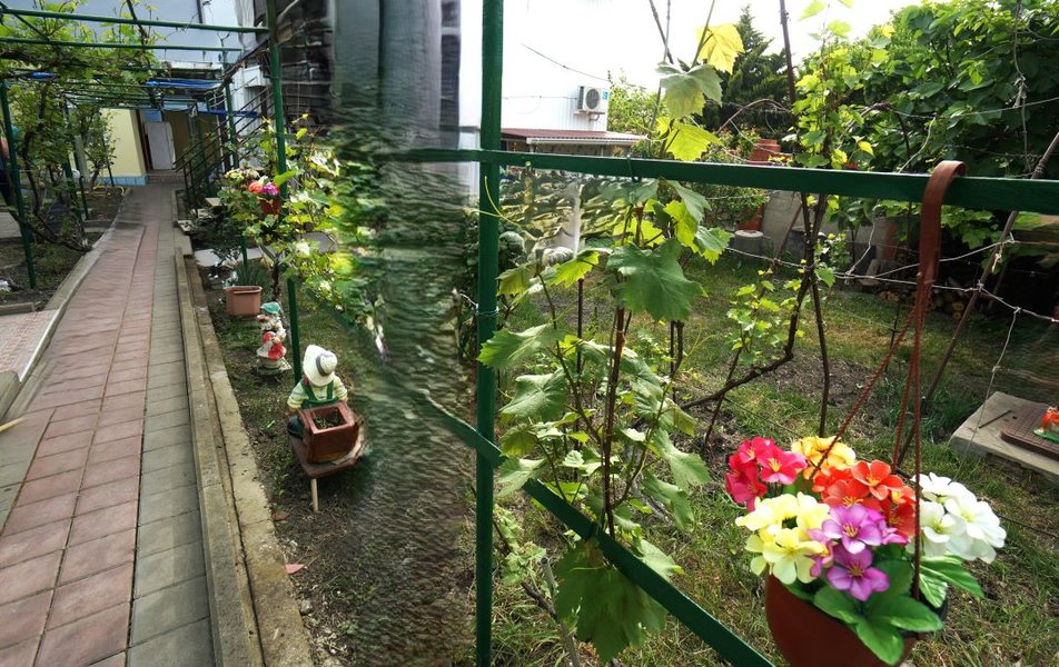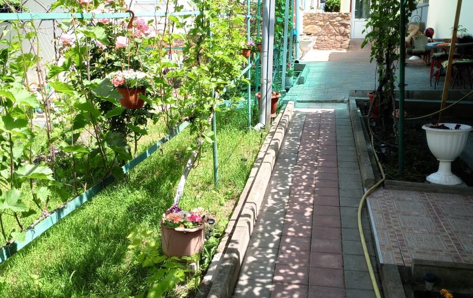На территории гостевого дома растут множество плодовых деревьев и яркие цветы, украшающие внутренний двор. Ближайший пляж песчано-галечный ( в 15 минутах неспешной ходьбы), с шезлонгами, навесами, зонтами от солнца, раздевалками и водными развлечениями на любой вкус.